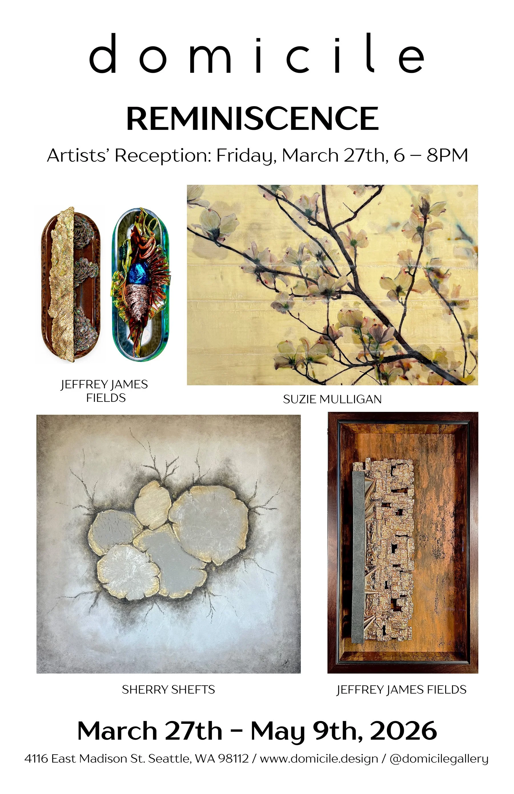 Join Domicile for the opening featuring work by textile and ceramic artist Jeffrey Fields, and encaustic artist Suzie Mulligan.