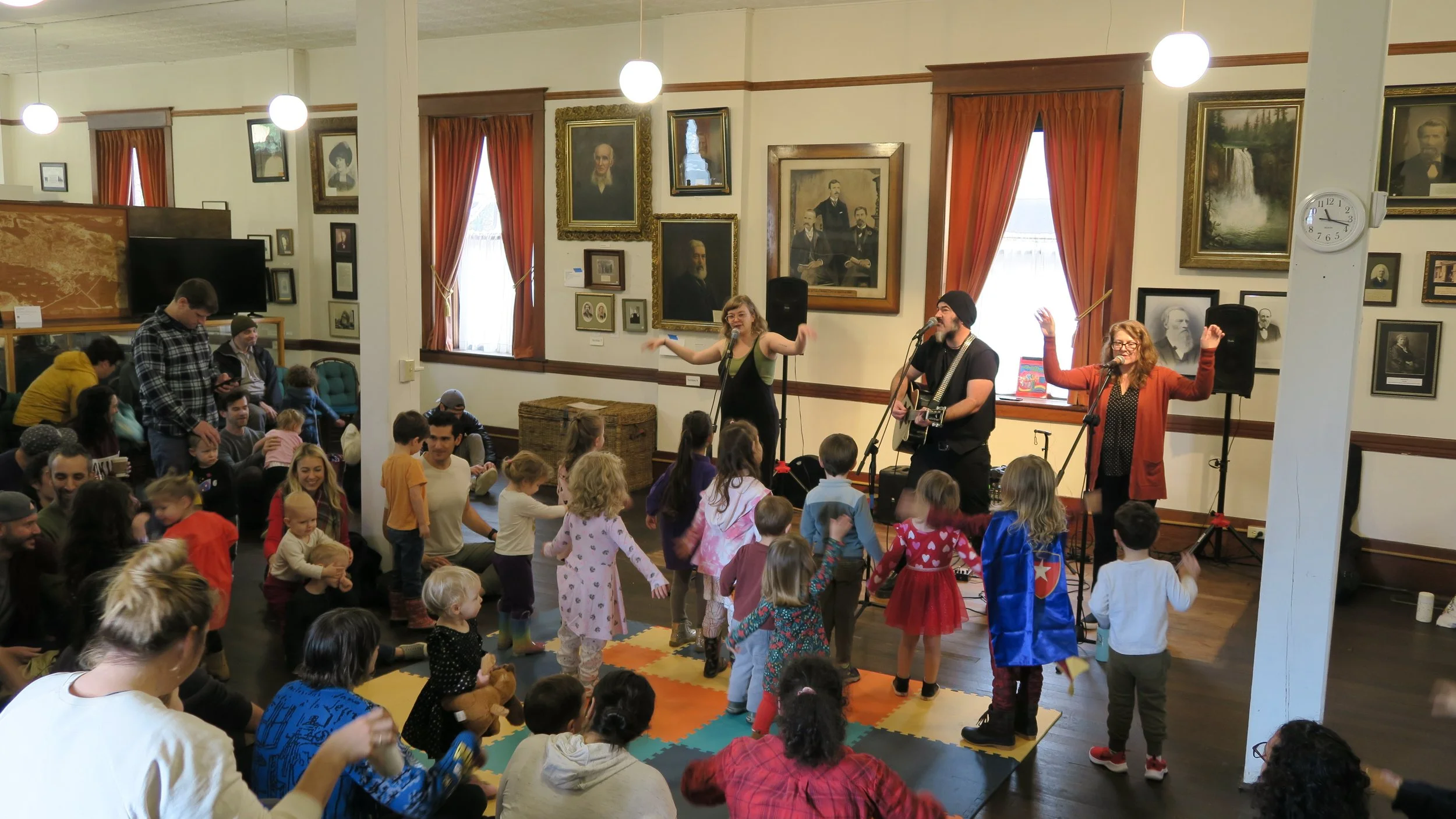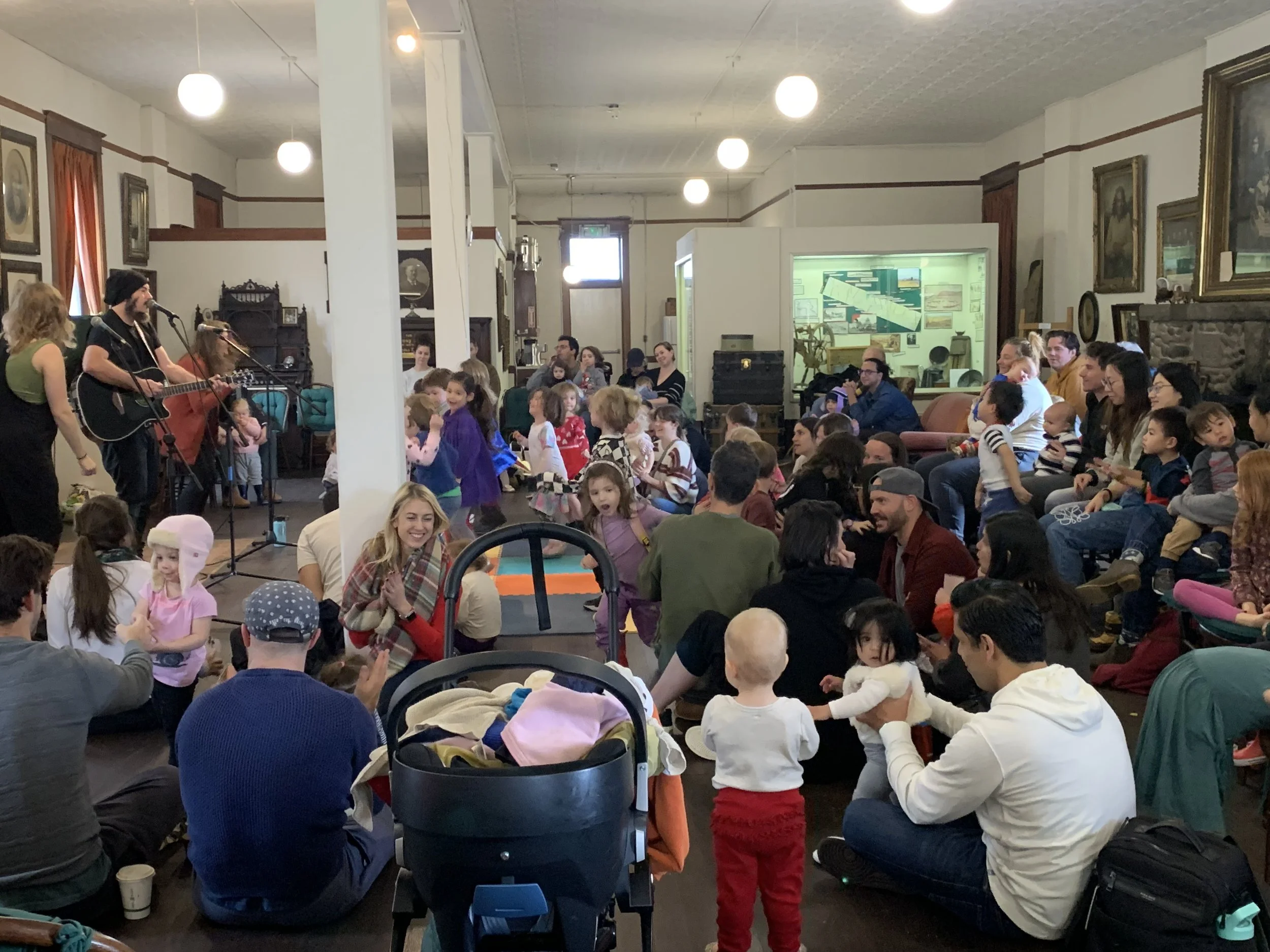 Saturday November 2nd, a full house arrived at Pioneer Hall to hear the music of Brian and His Good Buddies. Lots of dancing and singing along ensued. About 130 children and adults got their wiggles out and visited with neighbors. Don’t forget our next concert is December 7th from 11-12 with the super popular Harmonica Pocket. $5 online or at the door.