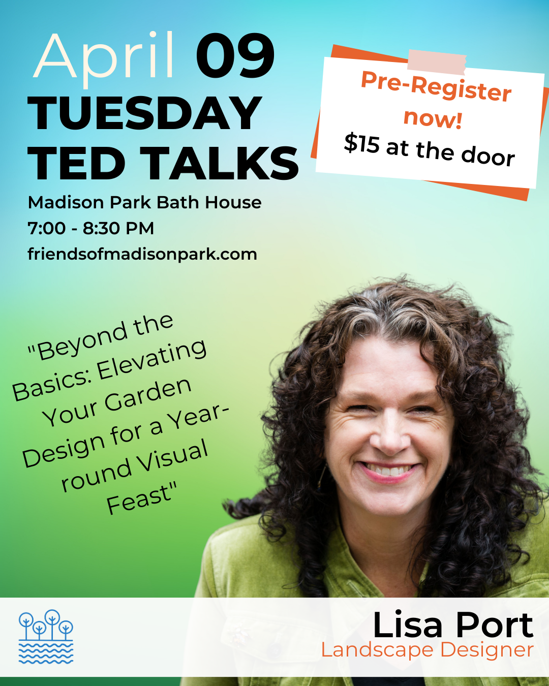 Our Tuesday TED Talk next week- April 9th, 7 p.m. at the Bathhouse- will kick off your Spring garden planning with expert help. Come hear Lisa Port of Banyon Tree Design, talk about how to best utilize our Seattle sized garden spaces and have blooms and interest year-round. Only $15/ticket.