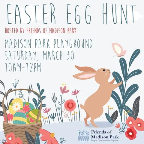 Your whole family can join in the EASTER EGG HUNT on March 30th. 10-12 in Madison Park park. Much more!