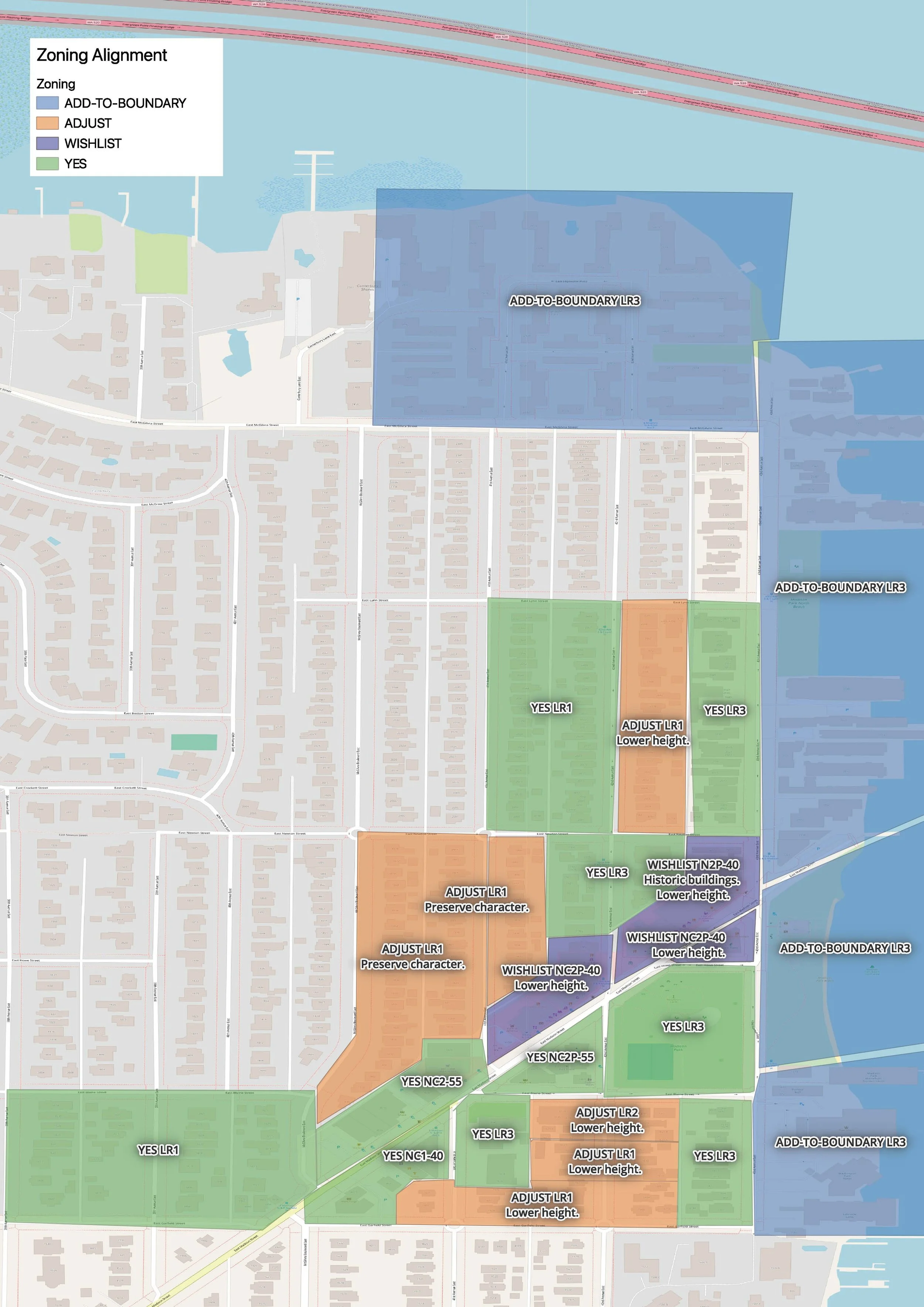Now phase 2 is before City Council select committee on the Plan, headed by Council member Eddie Lin. The Council is awaiting any changes from the new Mayor’s Office as they review the zoning designations, but no major changes are expected for Madison Park.
