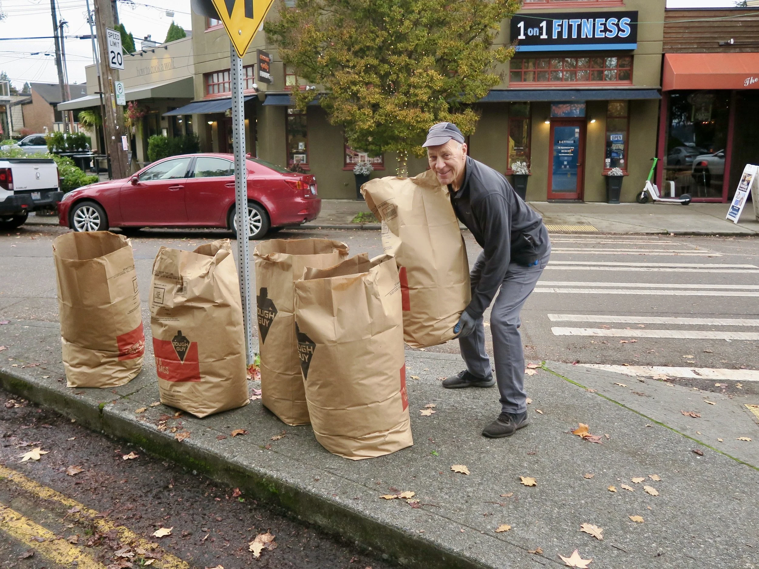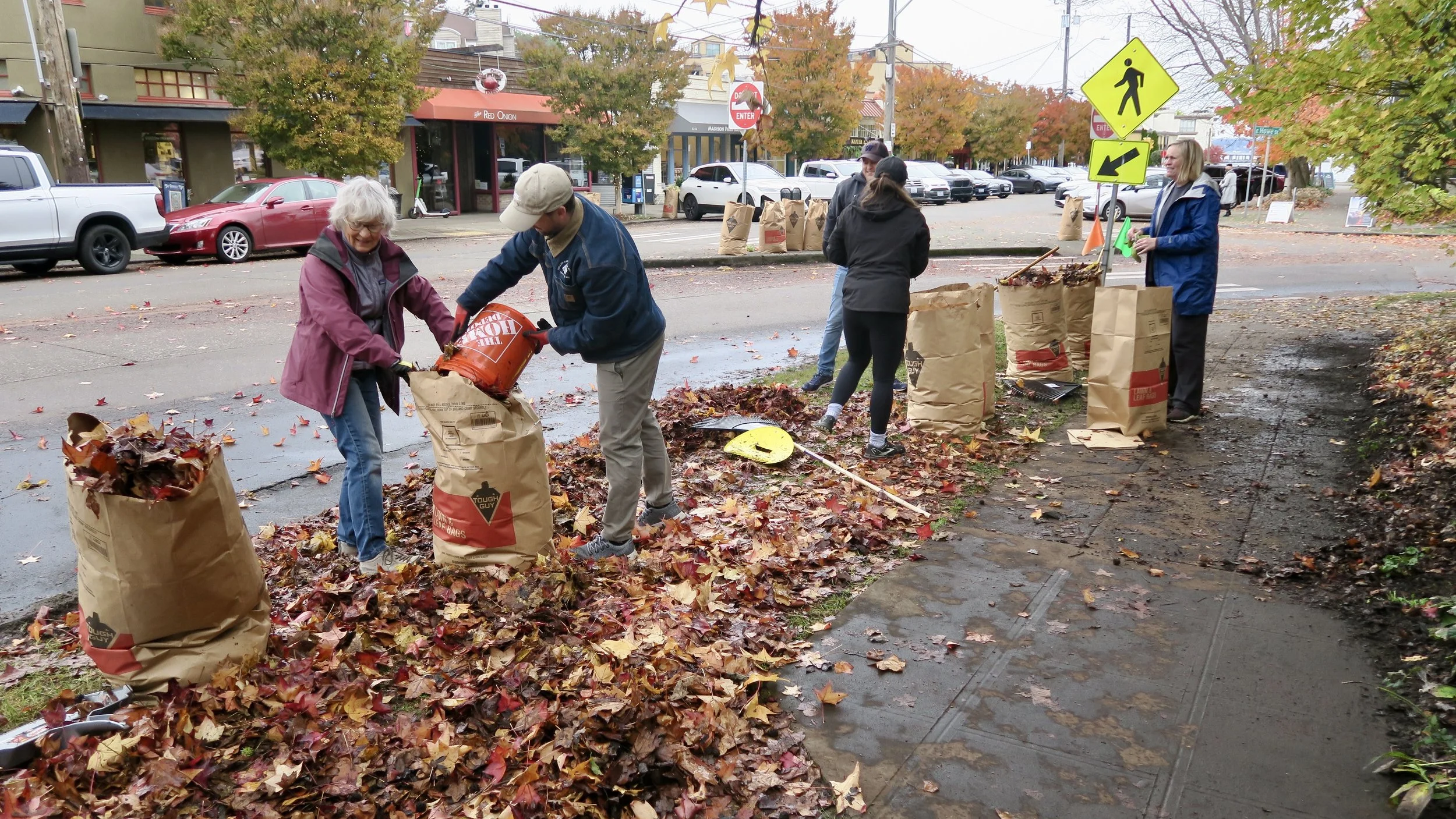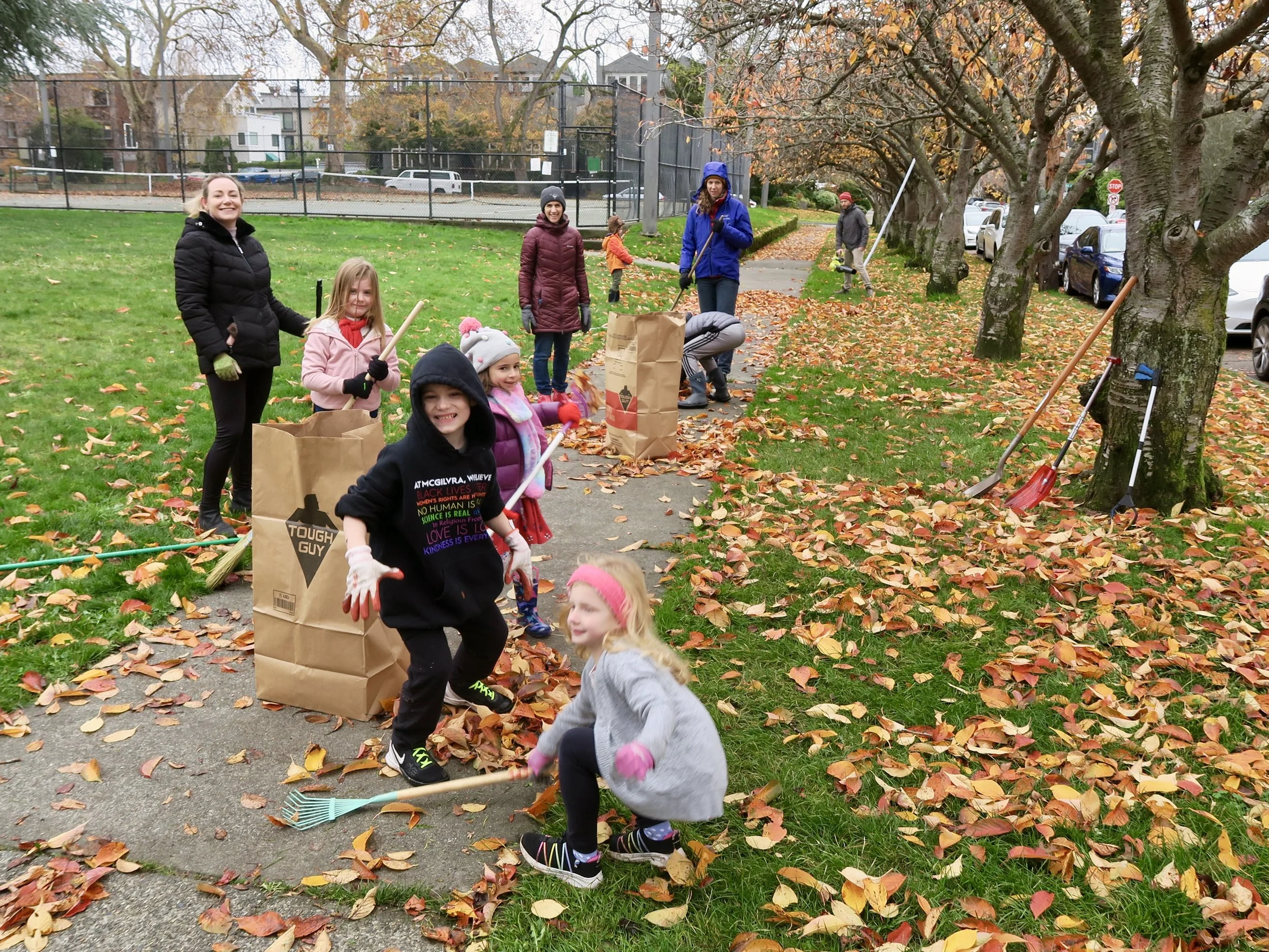 Yesterday, in spite of 90% chance of rain predicted, the skies stayed overcast and over 40 volunteers- adults and children- pitched in to rake leaves, sweep and clean our streets and fill close to 80 bags of yard waste for the city to pick up, (which, thank you, they did in the afternoon!)