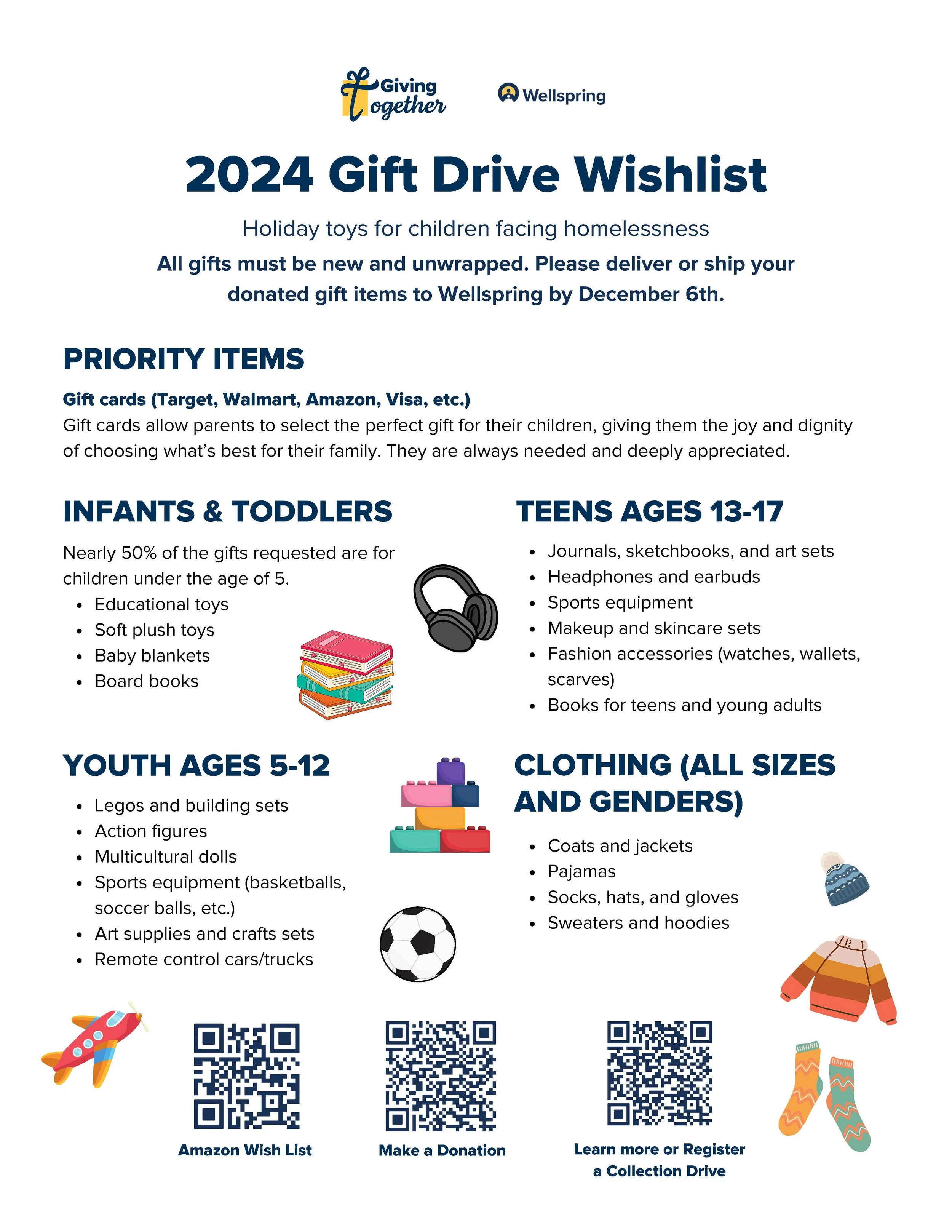 Toy Bins are Now in Red Wagon Toy Store, Starbuck’s, Parkshore and Bank of America for Wellspring Family Services. Check out the information below for donating a holiday toy for families in need.. Bins will be picked up on December 6th.
