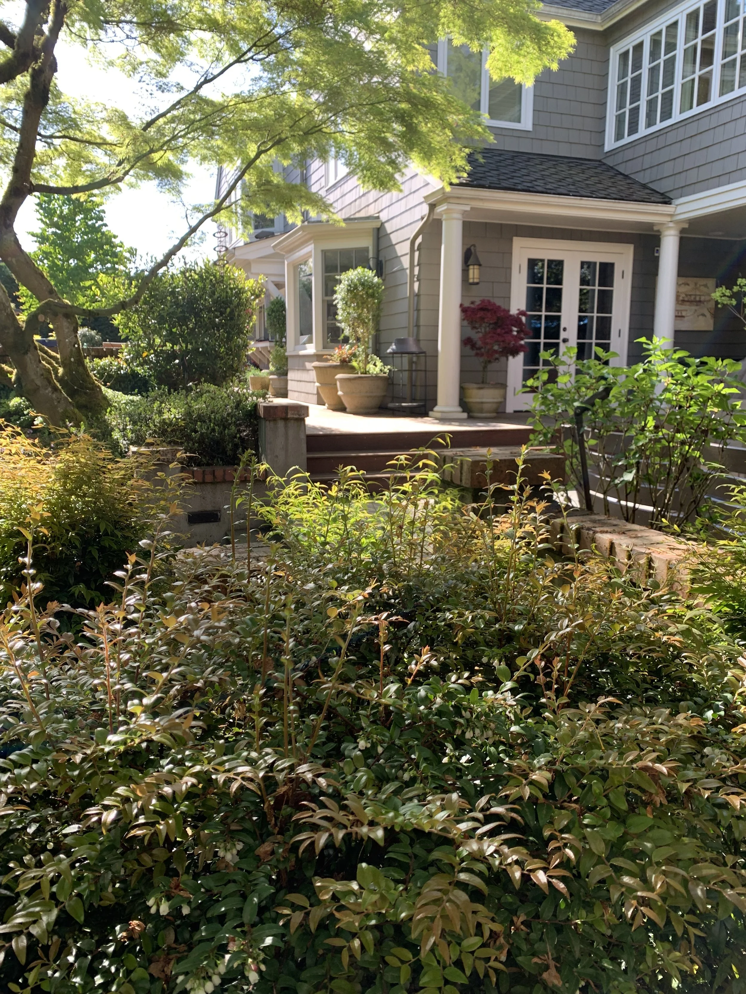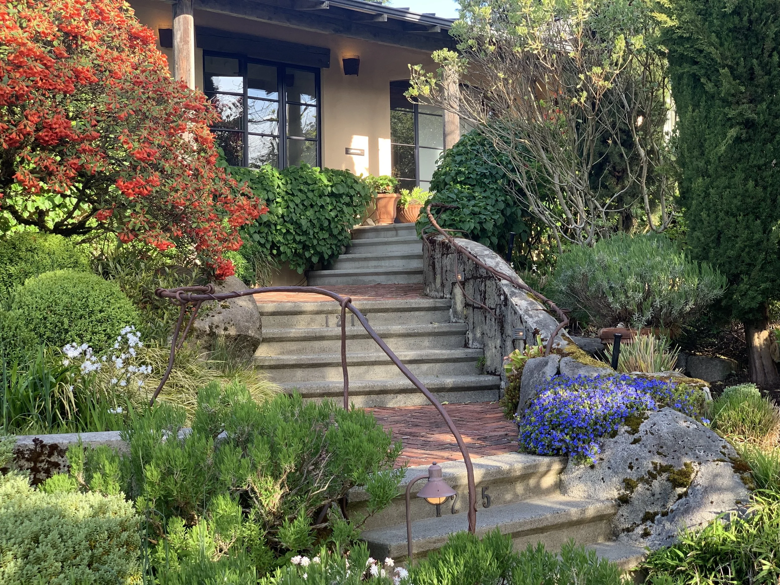 On May 18th, in spite of some downpours, intermittent sun and sprinkles- the Madison Park Garden Tour was attended by over 300 people!!! Thank goodness for Seattle hardy stock. The 15 gardens on the tour offered a variety of gardening styles, inventive use of outdoor spaces, and beautiful plantings. Thanks so much to the gracious homeowners who opened their gardens, welcomed all visitors, offered plant advice, history and sometimes bee hives, and mimosas. Thanks also to our many volunteers who made this day possible. Here are a few pictures of a day of smiling faces and inviting spaces.